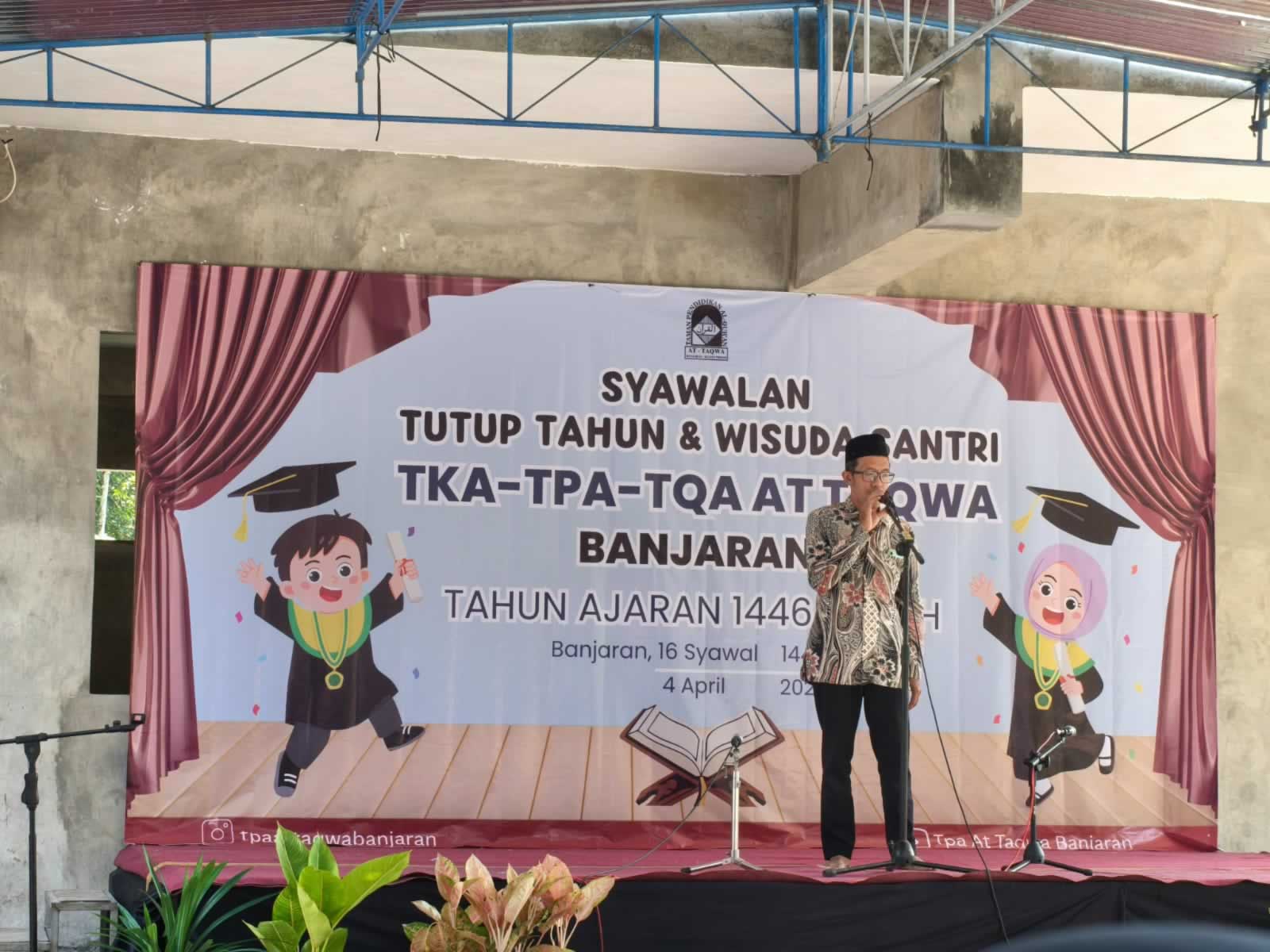 Sentolo - Sekretaris Badko TKA TPA Kulon Progo yang juga Ketua Badko TKA TPA Rayon Sentolo, Rachmat Purnanto, menghadiri kegiatan Syawalan, Tutup Tahun, dan Wisuda Santri TKA-TPA-TQA At Taqwa Banjaran, Sukoreno, Sentolo. Kegiatan tersebut dilaksanakan di Gedung TPA At Taqwa Banjaran pada Sabtu (4/4/2026).