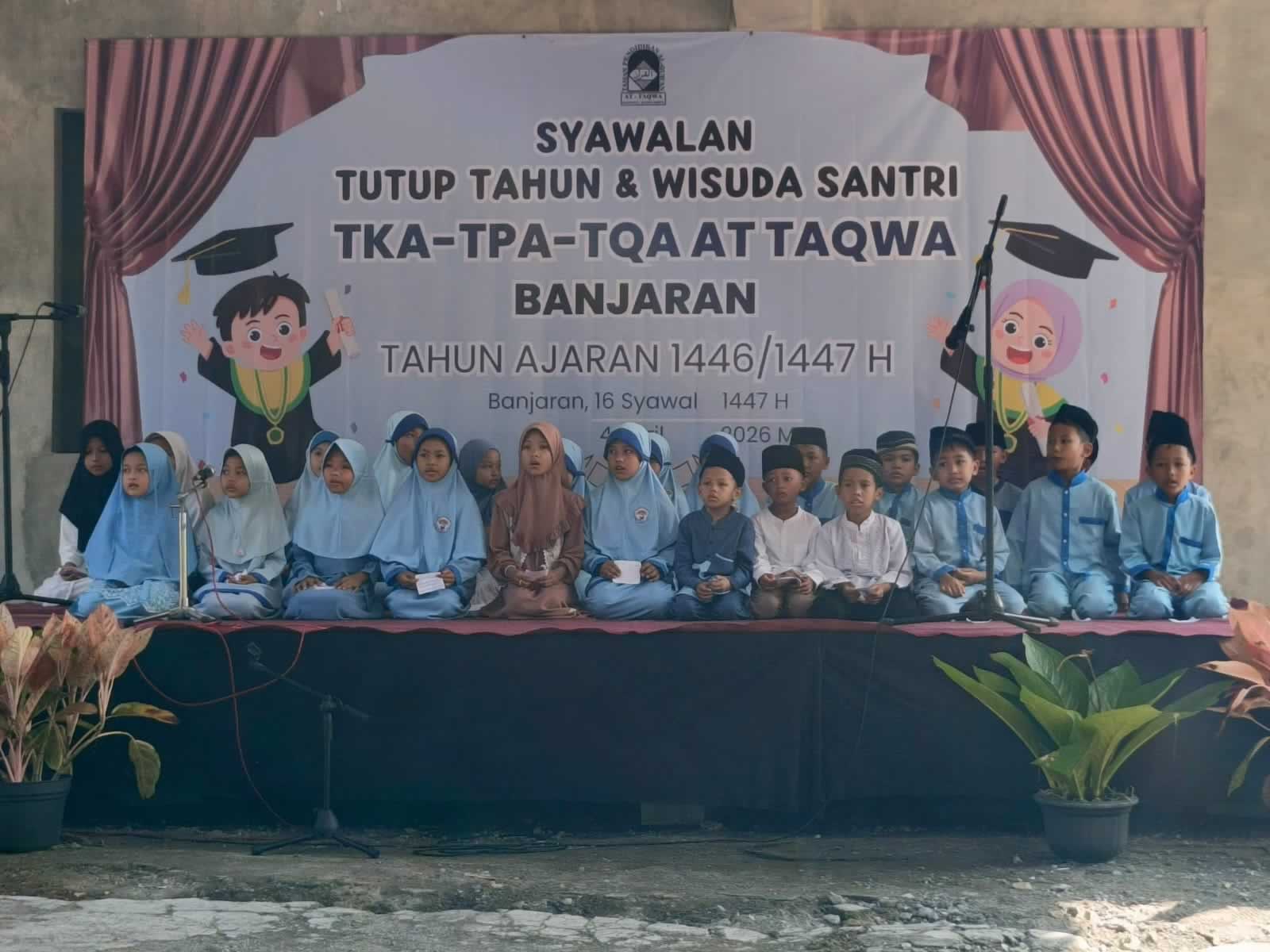 Pada wisuda tahun ini, sebanyak 7 (tujuh) santri dinyatakan lulus dan diwisuda. Selain prosesi wisuda, kegiatan tersebut juga dihadiri oleh Lurah Sukoreno yang diwakili oleh Carik Sukoreno, Dukuh Banjaran, Takmir Masjid At Taqwa Banjaran, tokoh masyarakat, serta wali santri.